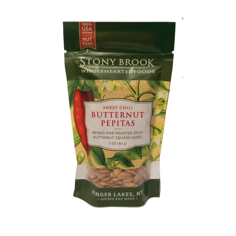 Ingredients: NY grown and roasted butternut squash seeds, NY maple syrup, sea salt, chili powder, lime powder, spices.