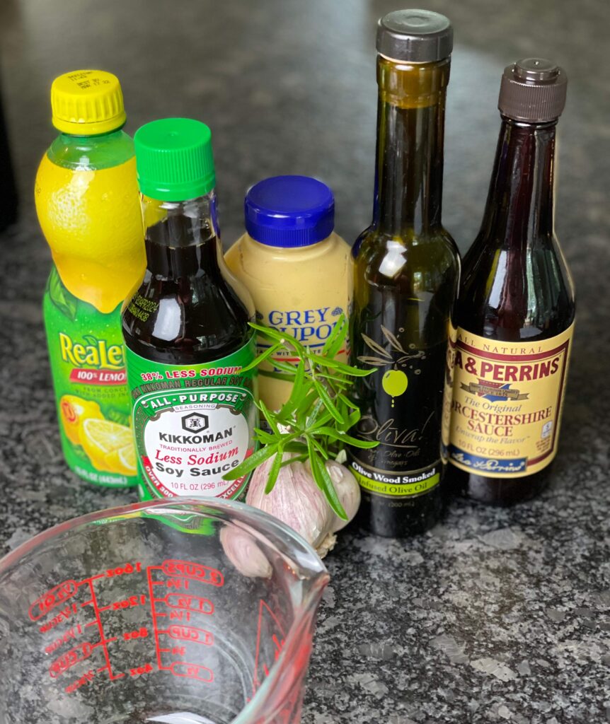 Combine the Oliva! Olive Wood Smoked Olive Oil, Oliva! Red Apple Dark Balsamic, soy sauce, Worcestershire sauce, dijon mustard, lemon juice, minced garlic and pepper into a bowl and whisk until combined. Place in sprigs of fresh rosemary and set aside.