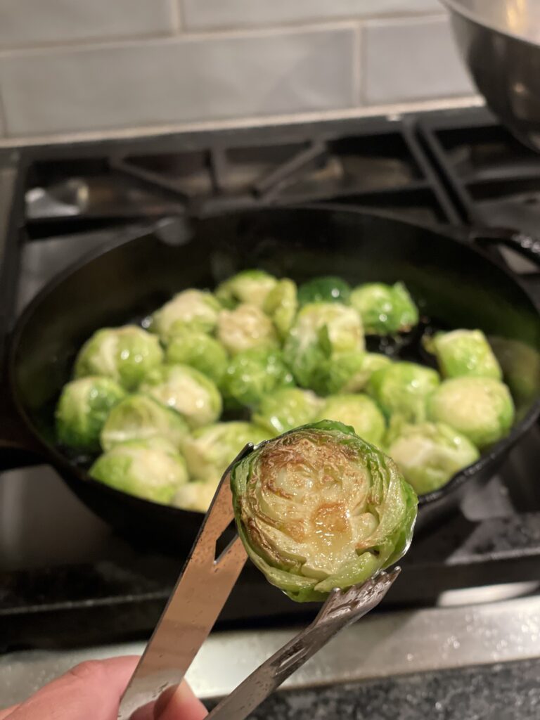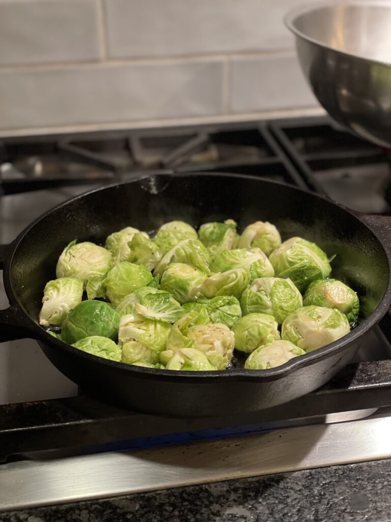 Place the brussels sprouts flat side down in the pan and sauté for 3-4 minutes until the bottoms start to brown.