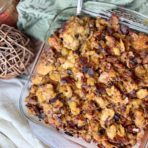 Roasted pears in our lovely Greek Sage Olive Oil, with rosemary, honey and bacon. Can it get any better than this? Herbaceous, pleasantly sweet and just plain comforting. This recipe is perfection for any autumn meal, or a Thanksgiving side dish!